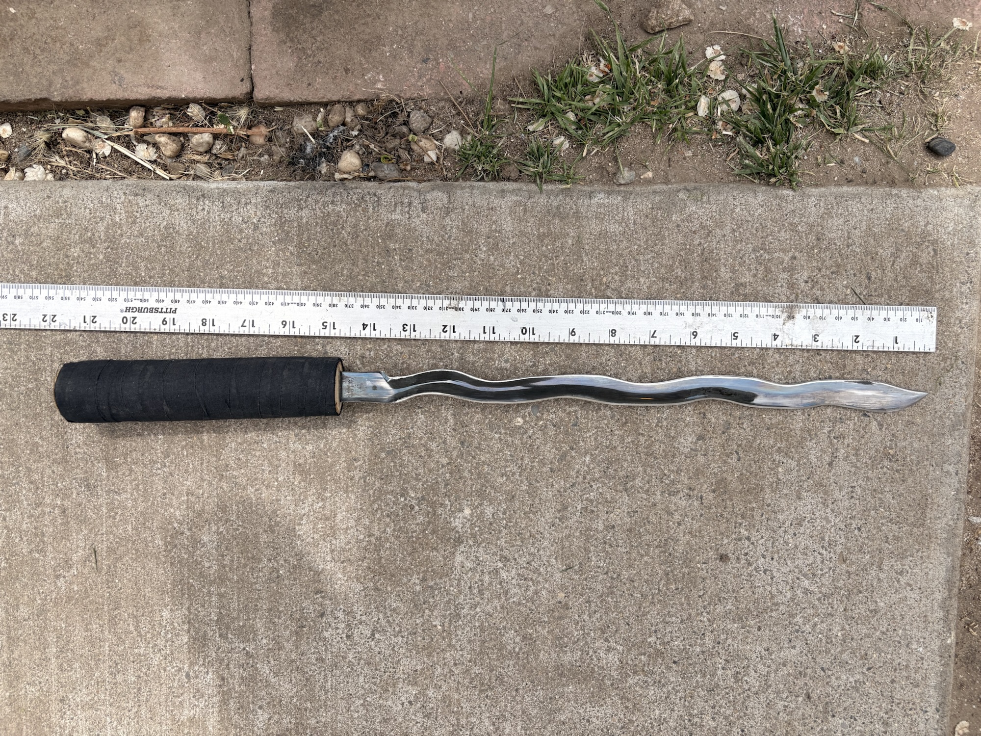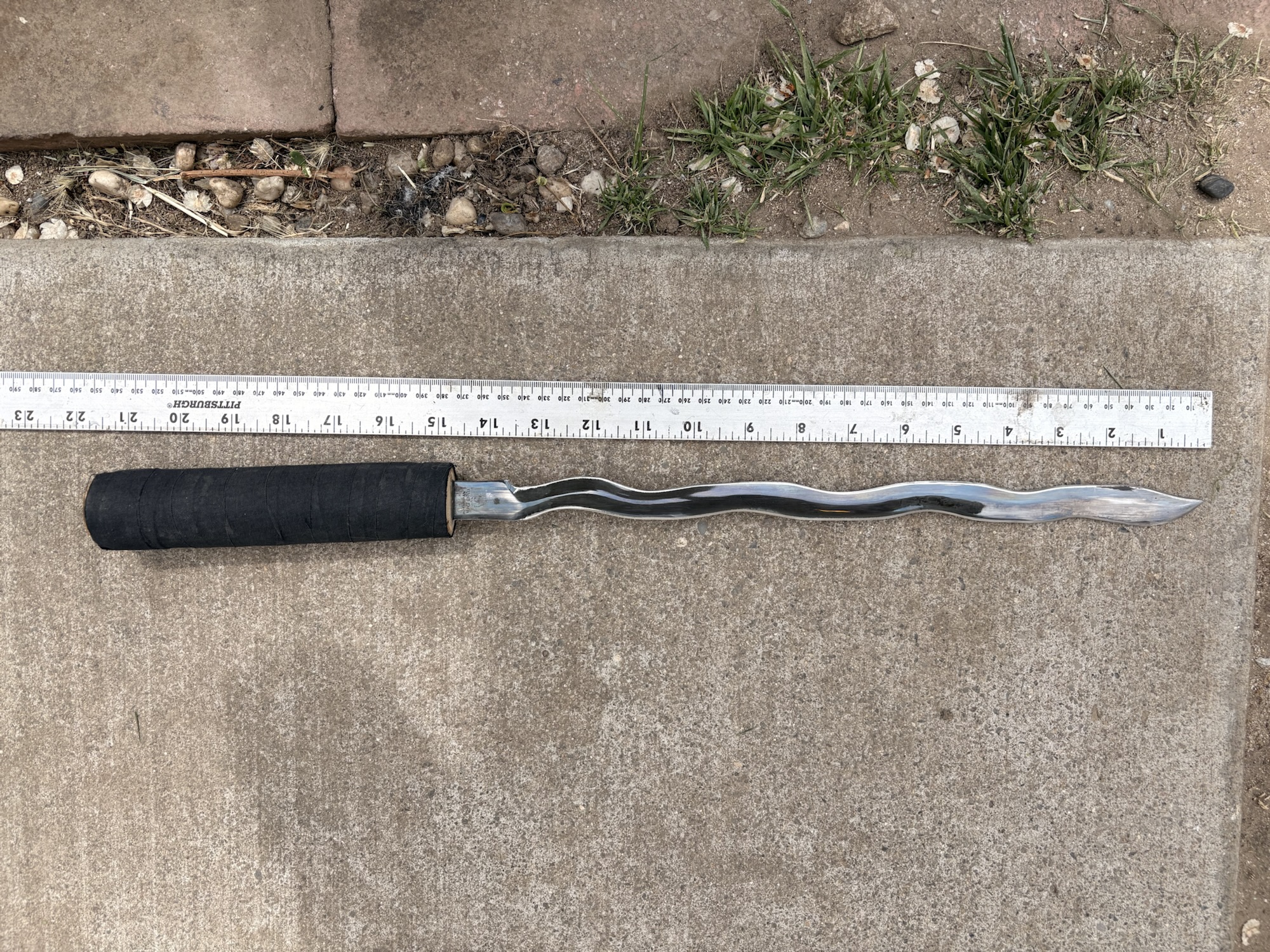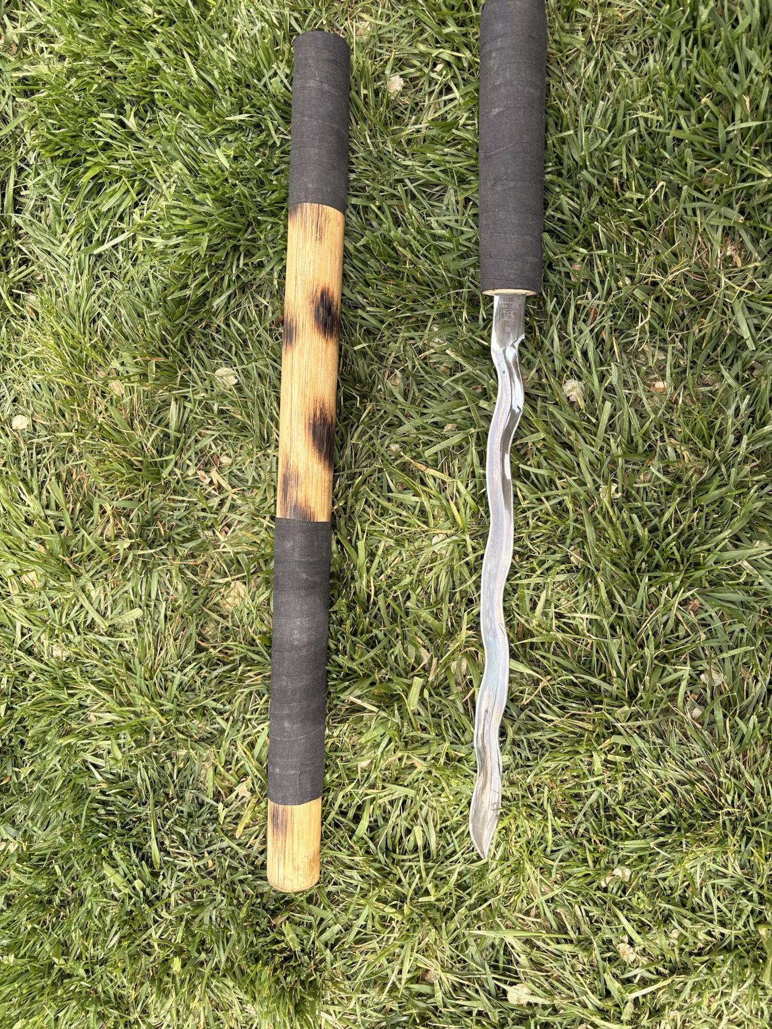 Kriss style sneak blade hidden in a thick rattan